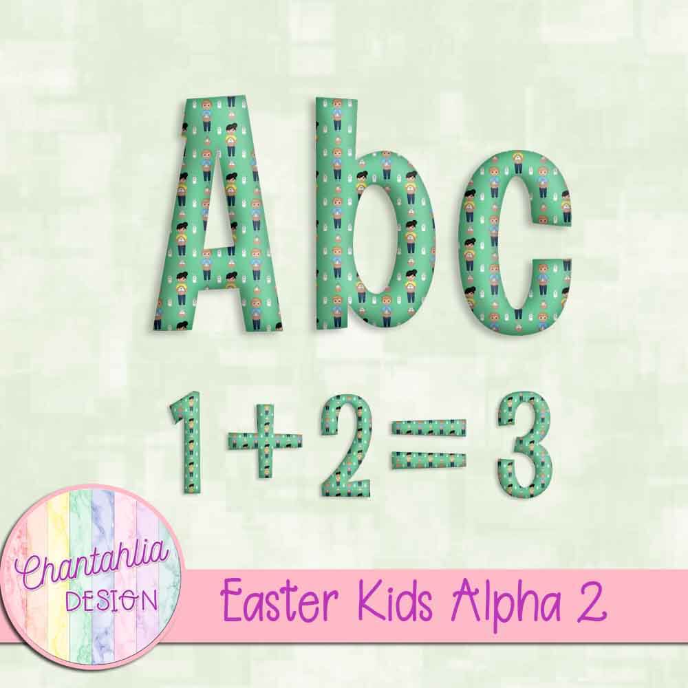 This file contains an Alpha to match the Easter Kids set. The Easter Kids alpha contains transparent png files.