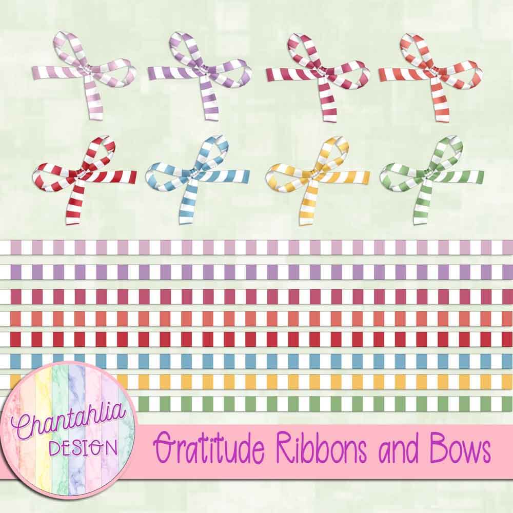 This file contains Gratitude Ribbons and Bows. The ribbons and bows are transparent png files.
