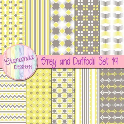 This file contains 10 digital papers featuring various patterns in Grey and Daffodil. The grey and daffodil digital papers featuring various patterns are 12x 12in jpg files