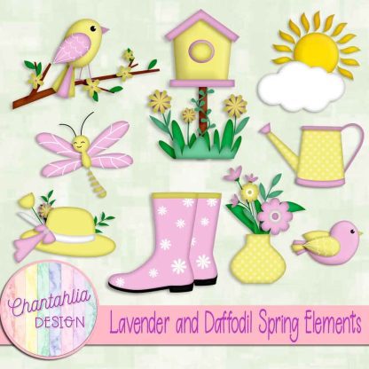 This file contains spring design elements in Lavender and Daffodil. The lavender and daffodil spring design elements are transparent png files.