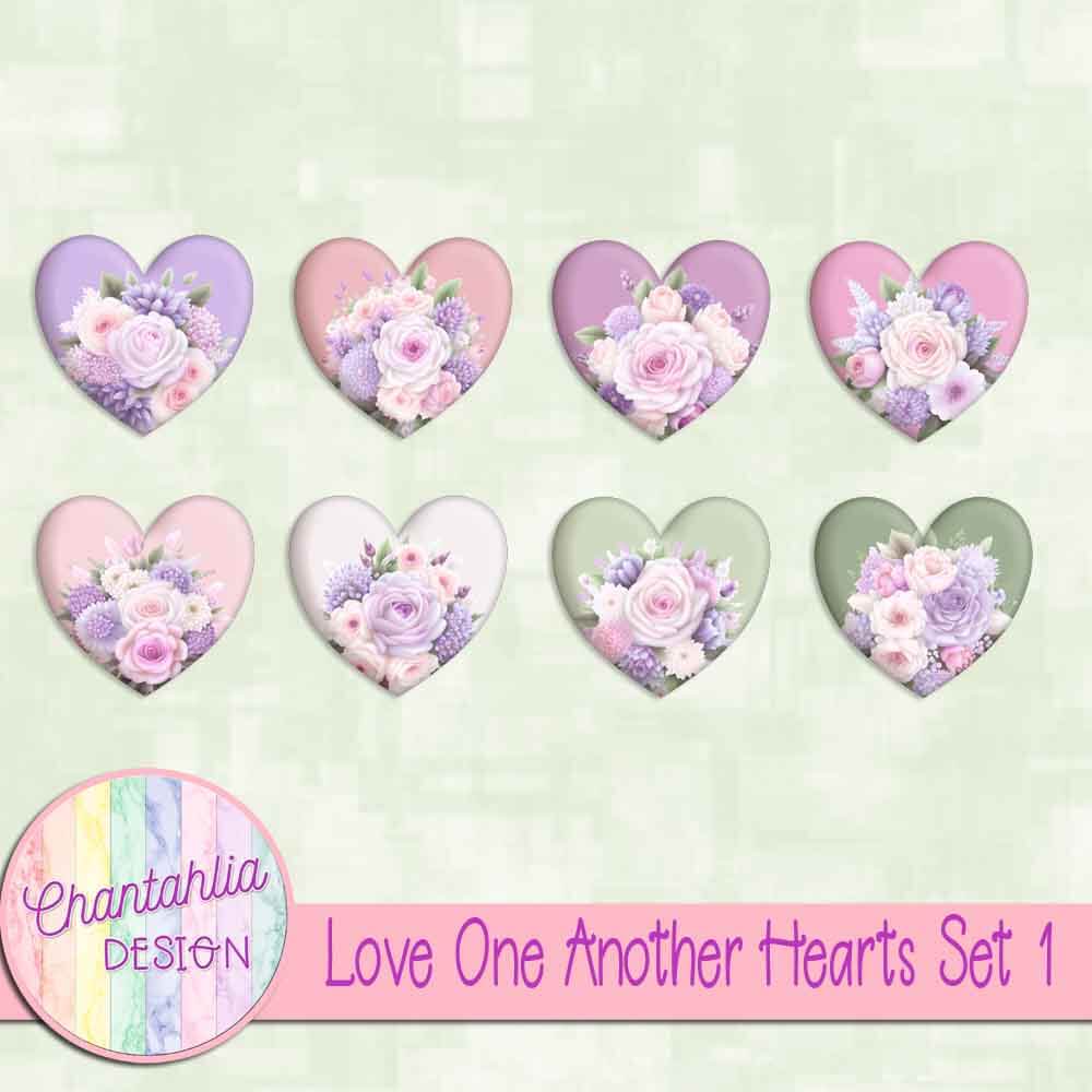 This file contains Love One Another Hearts. The hearts are transparent png files.