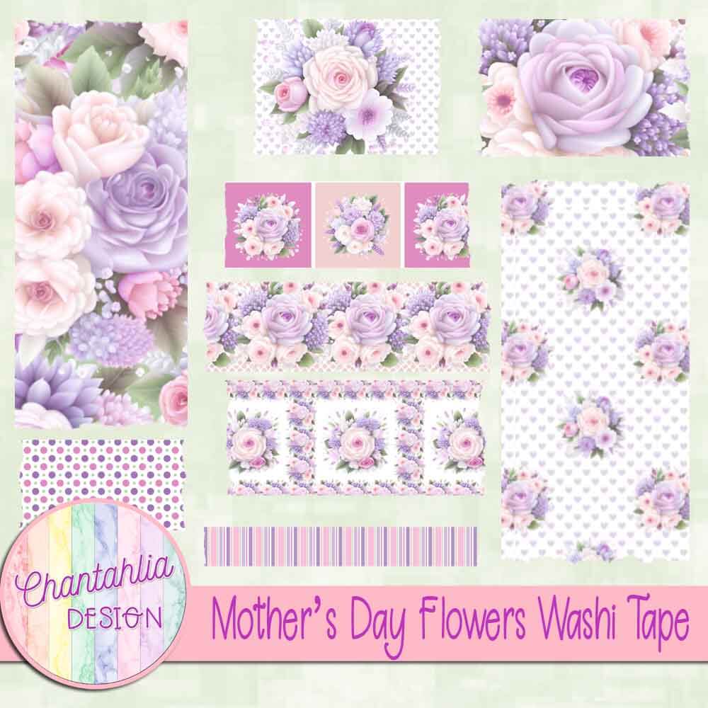 This file contains Mothers Day Flowers Washi Tape. The washi tape are transparent png files.