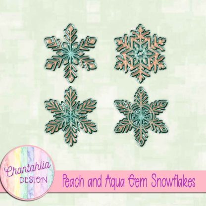 This file contains gem snowflakes design elements in Peach and Aqua. The peach and aqua gem snowflakes design elements are transparent png files.