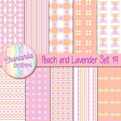 This file contains 10 digital papers featuring various patterns in Peach and Lavender. The peach and lavender digital papers featuring various patterns are 12x 12in jpg files