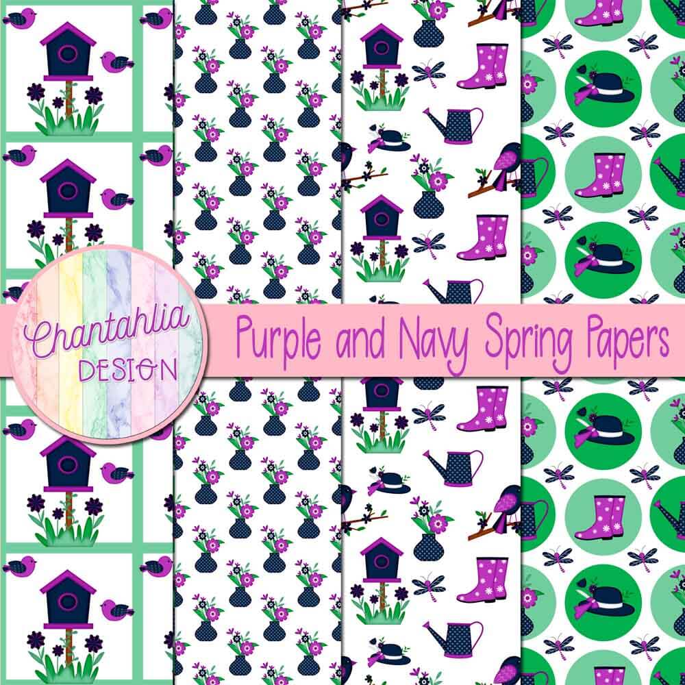 This file contains 4 digital papers featuring spring designs in Purple and Navy. The purple and navy digital papers featuring spring designs are 12x 12in jpg files