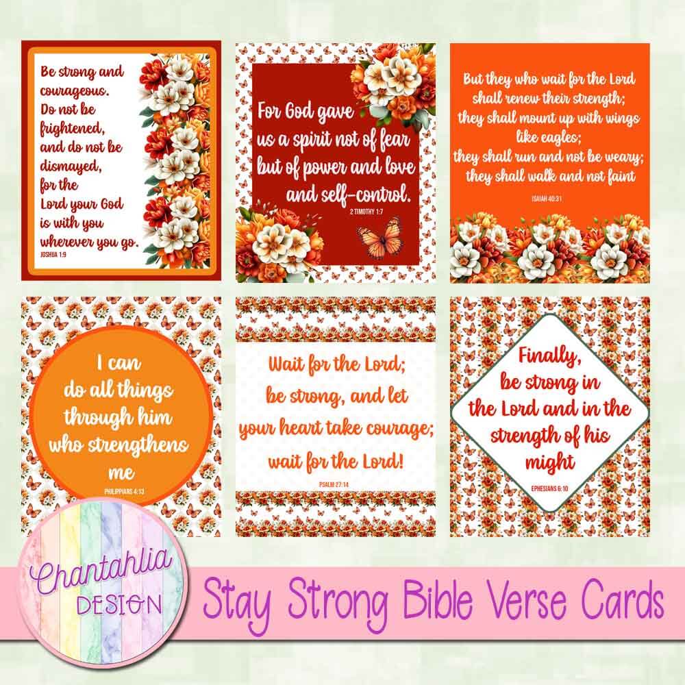 This file contains Stay Strong Bible Verse Cards. The Bible verse cards are transparent png files.