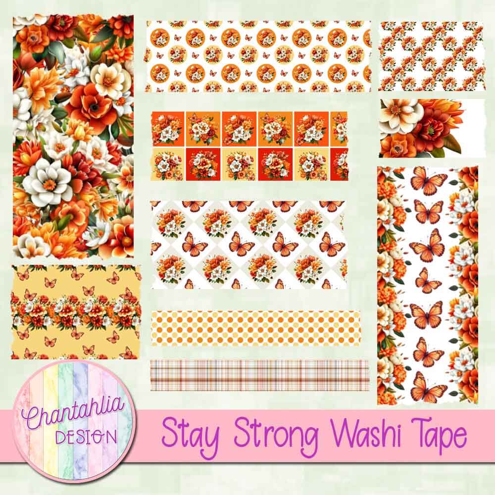 This file contains Stay Strong Washi Tape. The washi tape are transparent png files.