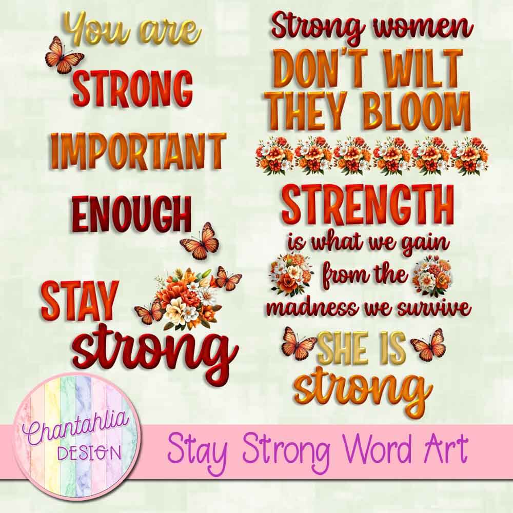 This file contains Stay Strong Word Art. The word art are transparent png files.